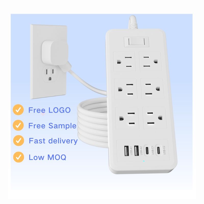 Customizable Premium Power Strip 6 Outlets 4 USB Ports Home Office Cruise Friendly Featuring Customizable Logo Color Packaging