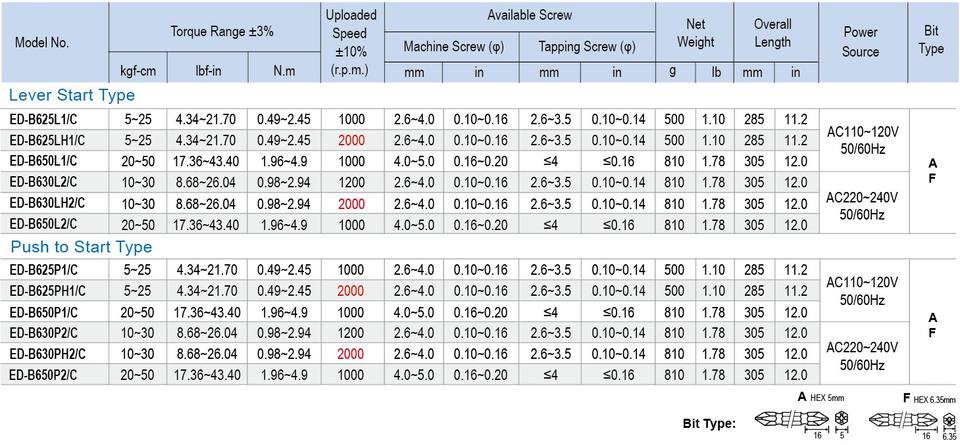 model number:ED-B625L1/C ~ ED-B650P2/C