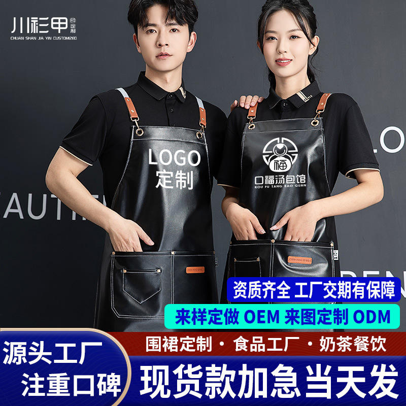 Customizable Pu Apron One Size Waterproof Oil Proof For Catering Kitchen Use Solid Color With Logo Printing