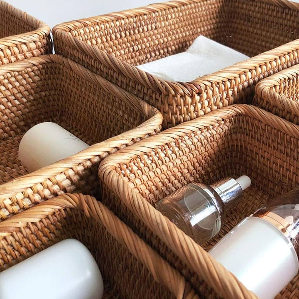 Customizable Rattan Woven Modern Storage Organizer Basket Rectangle Shape Multifunctional Eco-Friendly Kitchen Use 11cm H X
