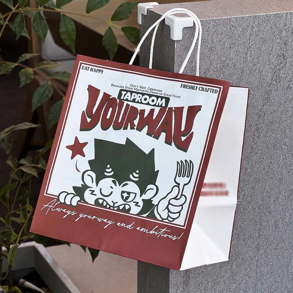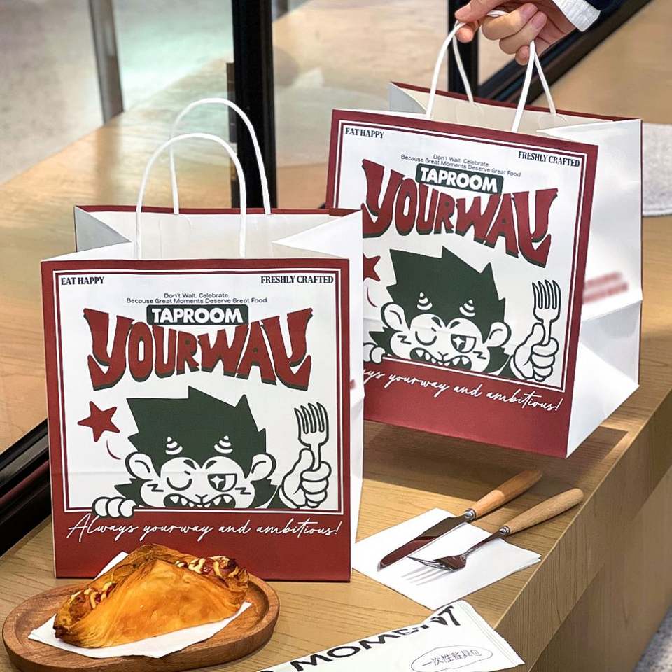 Customizable Recyclable Biodegradable Kraft Paper Takeaway Bags with Handle for Fast Food, Taproom & Restaurant Packaging