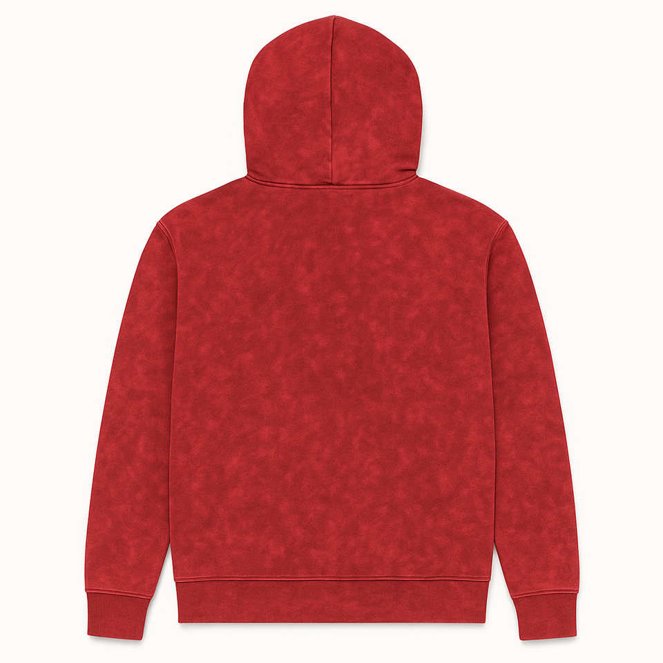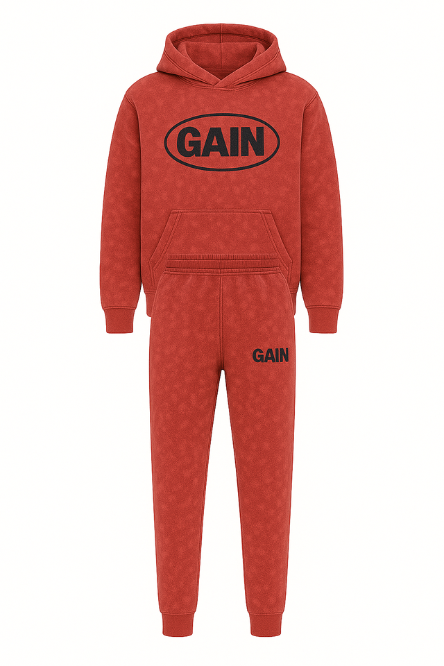 Customizable Red Acid Washed Distressed Tracksuit With Gain Logo Hoodie And Joggers Set Solid Pattern Set For Winter