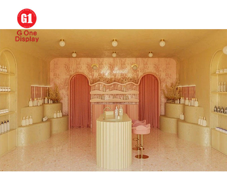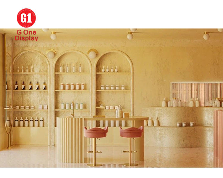 Customizable Retail Cosmetic Shop Stand Modern Makeup Store Furniture Wood Makeup Cabinet Design