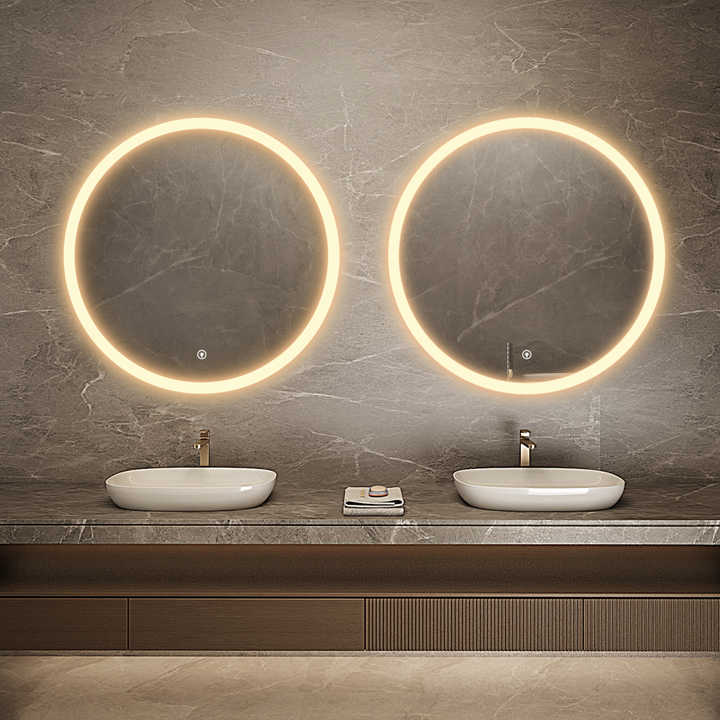 Customizable Round LED Bathroom Mirror Frameless Tempered Backlit Anti-Fog Mirror