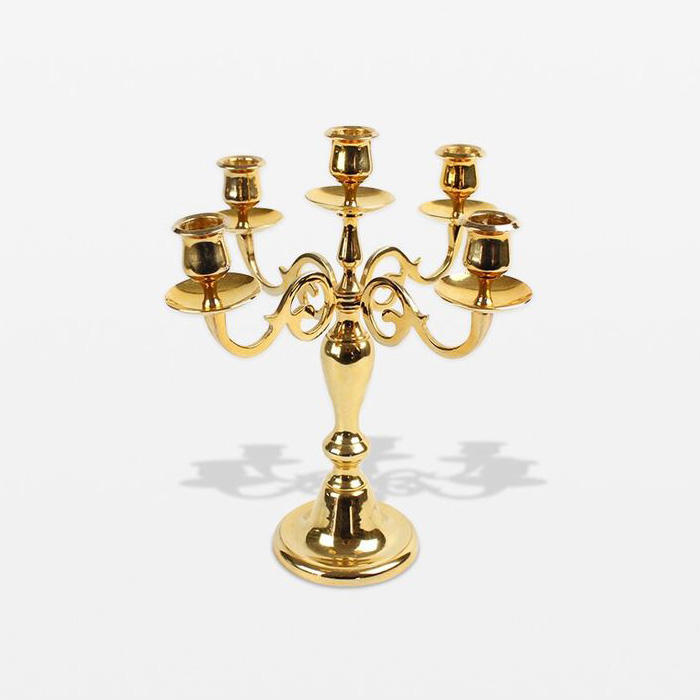 Customizable Shiny Gold Metal Aluminum Candelabra 5-Arm Handicraft for Home Decor Wedding Parties Table Decorations