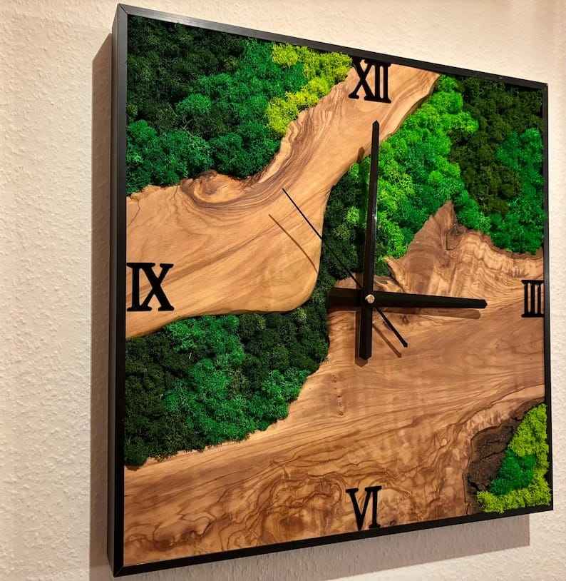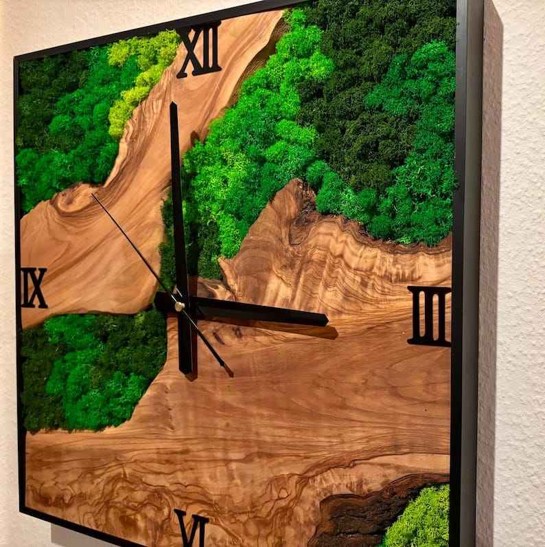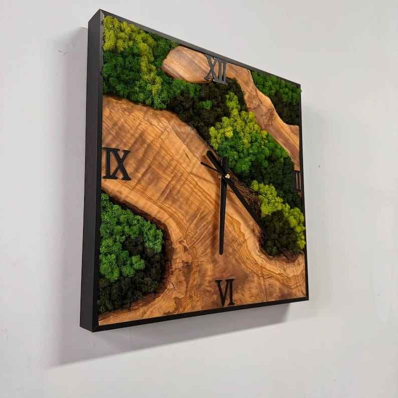 Customizable Simple Plant Wall Clock Handmade Natural Moss Wall Clock for Home Office Decor
