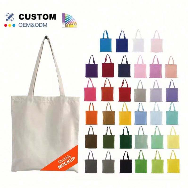 Customizable Size Solid Color Luxury Custom Reusable Large Capacity Foldable Canvas Cotton Bags with Handle for Women