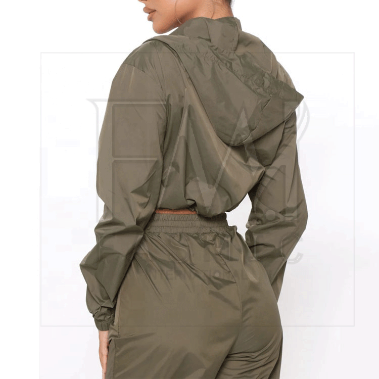Customizable Size Women's Windbreaker Set Solid Pattern Windproof Cropped Two-Piece Sets with Lace Decoration for Winter Sale