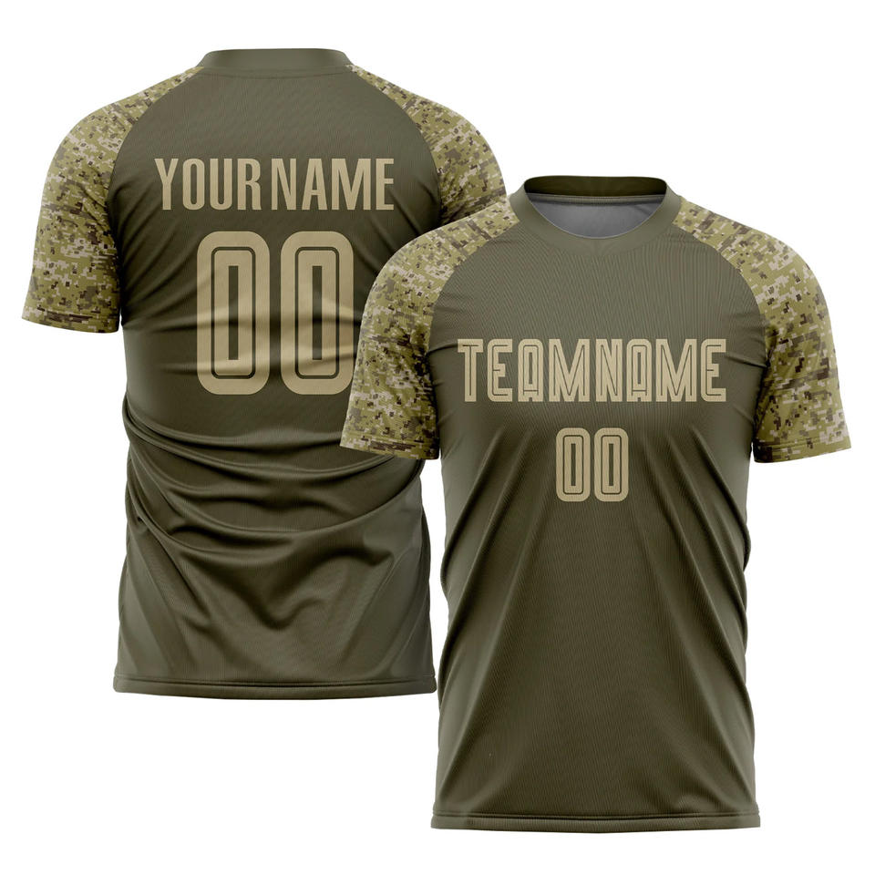 Customizable Soccer Uniform Jersey Shirts Vegas Gold-Camo Sublimation Salute Service Sets Olive Old Style Tops