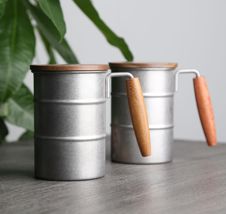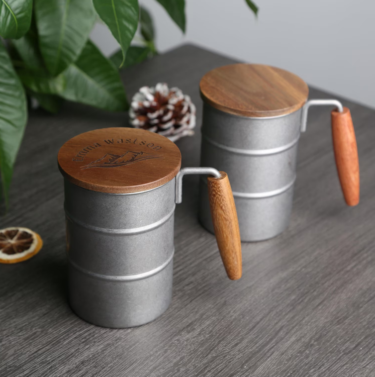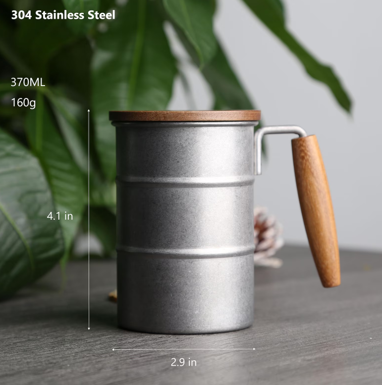 Customizable Stainless Steel 304 Outdoor Mug with wooden Handle Stainless Steel Tumbler Beer gift coffee Mug and Cups