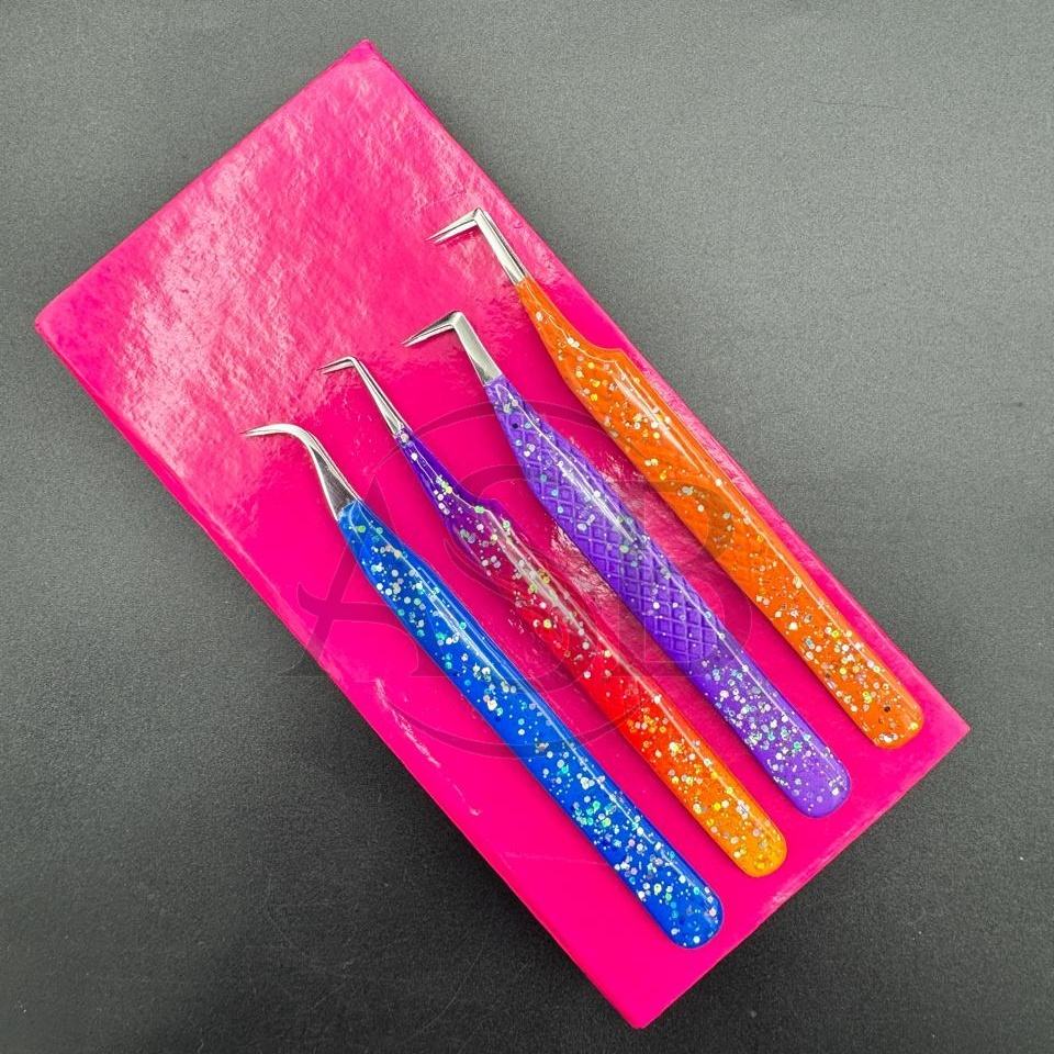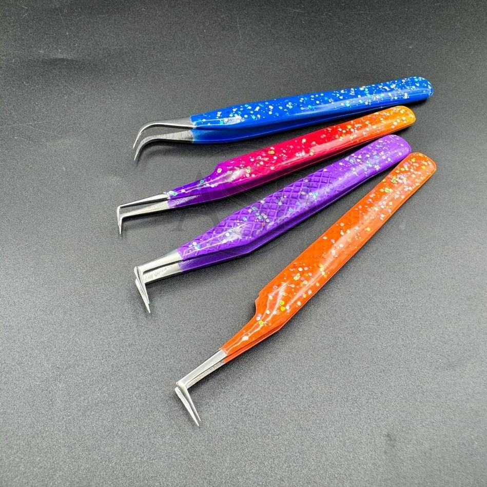 Customizable Stainless Steel Eyelash Tweezers 45 90 Degree Slim Boot Fiber Tip Glittery Private Logo Lash Extension Tweezers