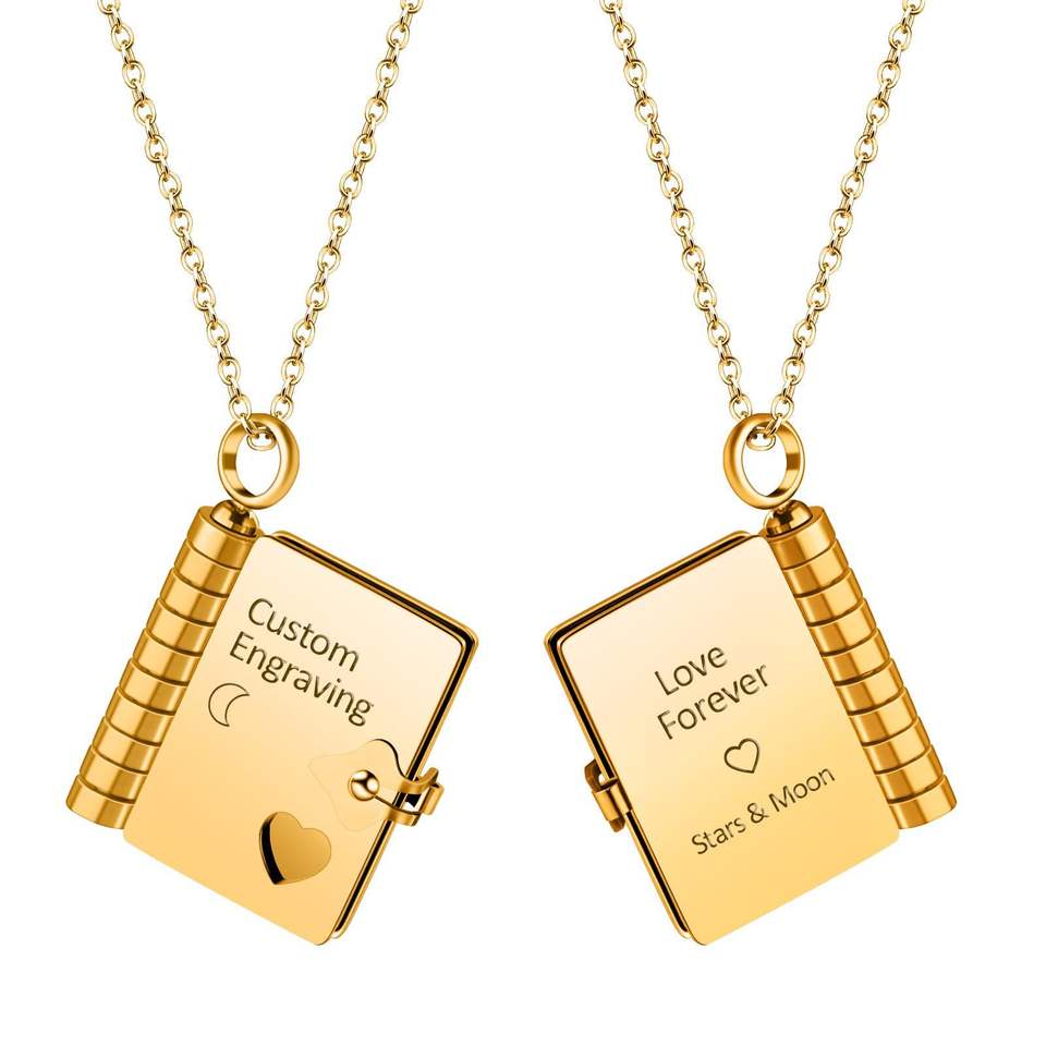 Customizable Stainless Steel Locket Book Pendant Necklace with Engraved Name Date Best Friend's Gift love Letter for Women Men