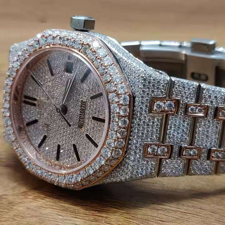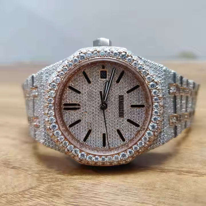 Customizable Stainless Steel Moissanite Diamond VVS Watch for Men Full Iced Luxury Analog Dial Display Fashion VVS Customization