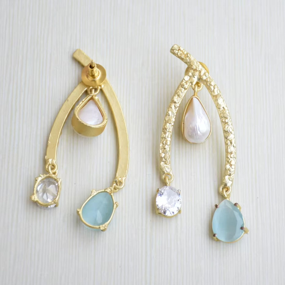 Artisan Pearl Drop Earrings With Precious Gemstone Pearl Shiny Gold Coating And Handcrafted Quality Made Jewelry