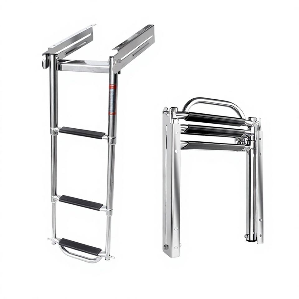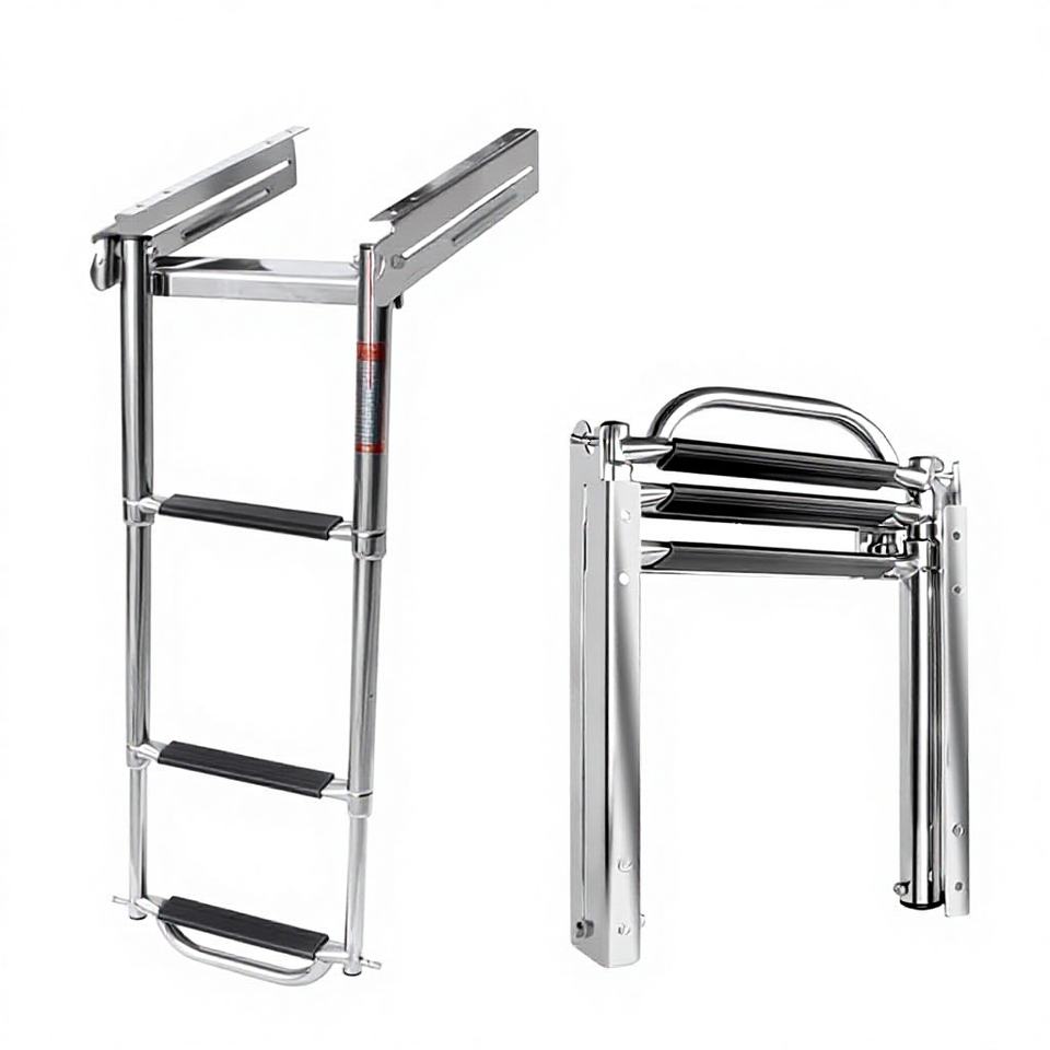 Customizable Three-Section Retractable Anti-Slip Stainless Steel Ladder Speedboat Boarding Accessory for Fiberglass Yacht & Boat