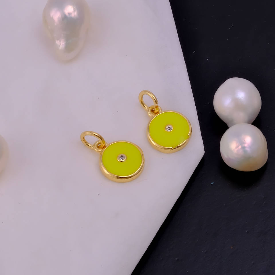 Customizable Trendy Children's Yellow Enamel Round Pendant Gold-Plated Brass Charm Party Jewelry Necklace Making