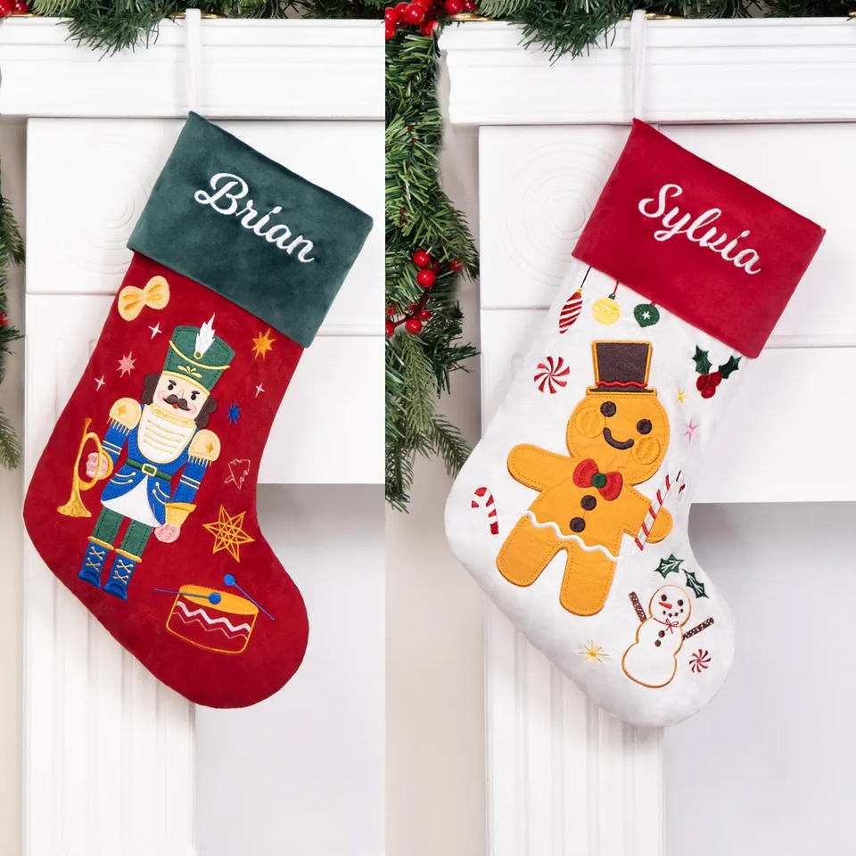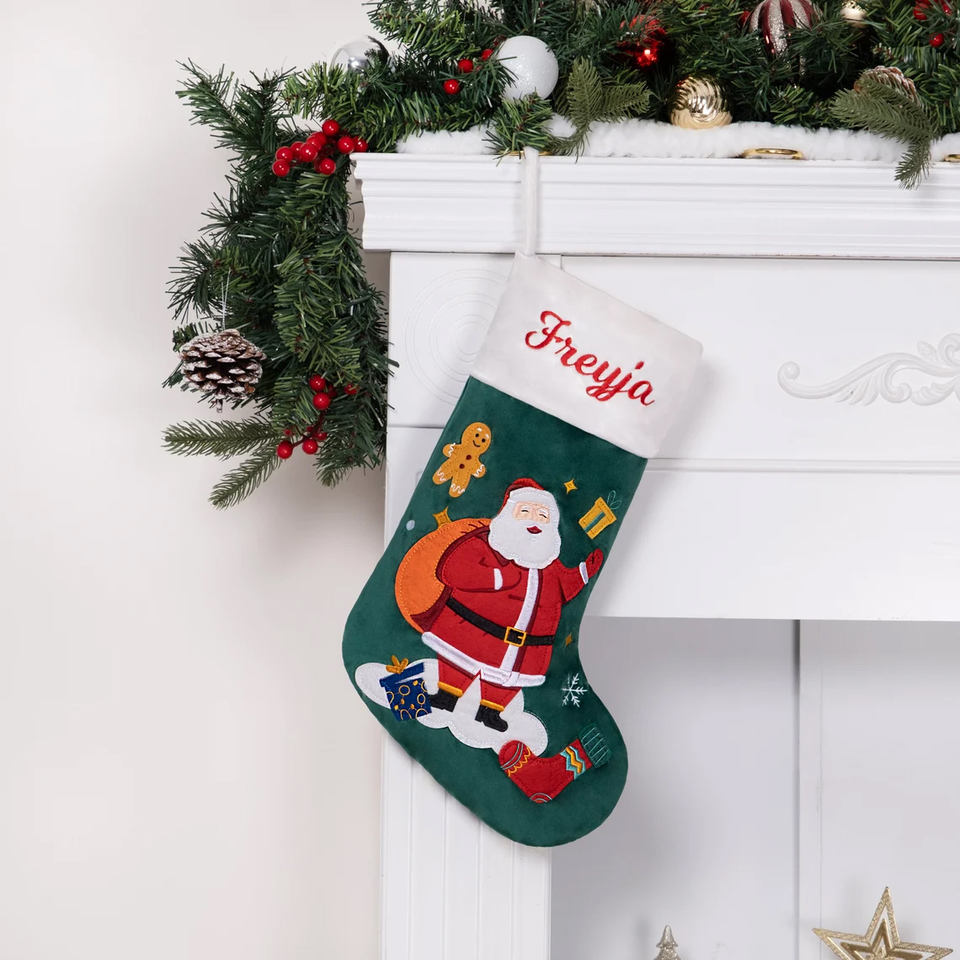 Personalized Velvet Christmas Stocking Socks with Embroidered Name and Quilted Felt MOQ 50pcs Decorations