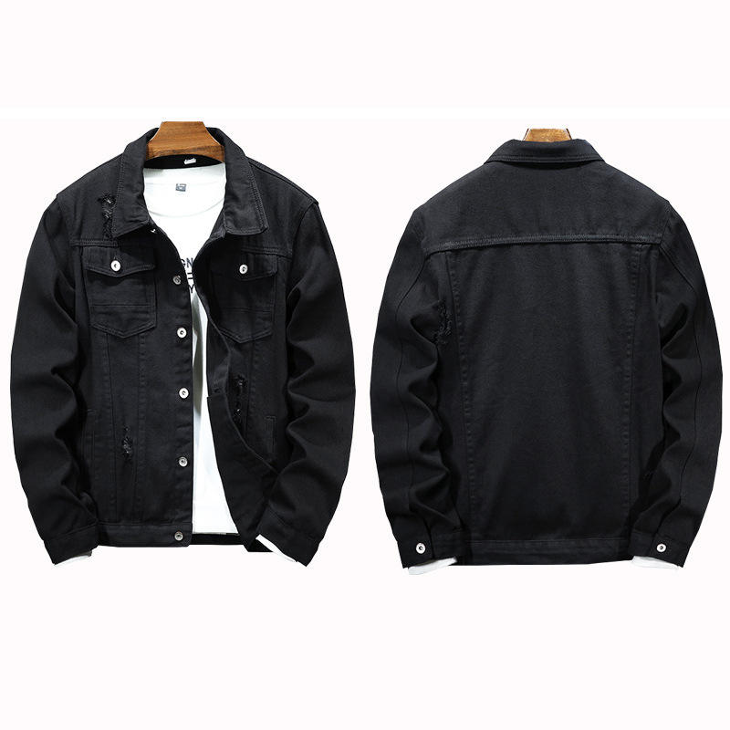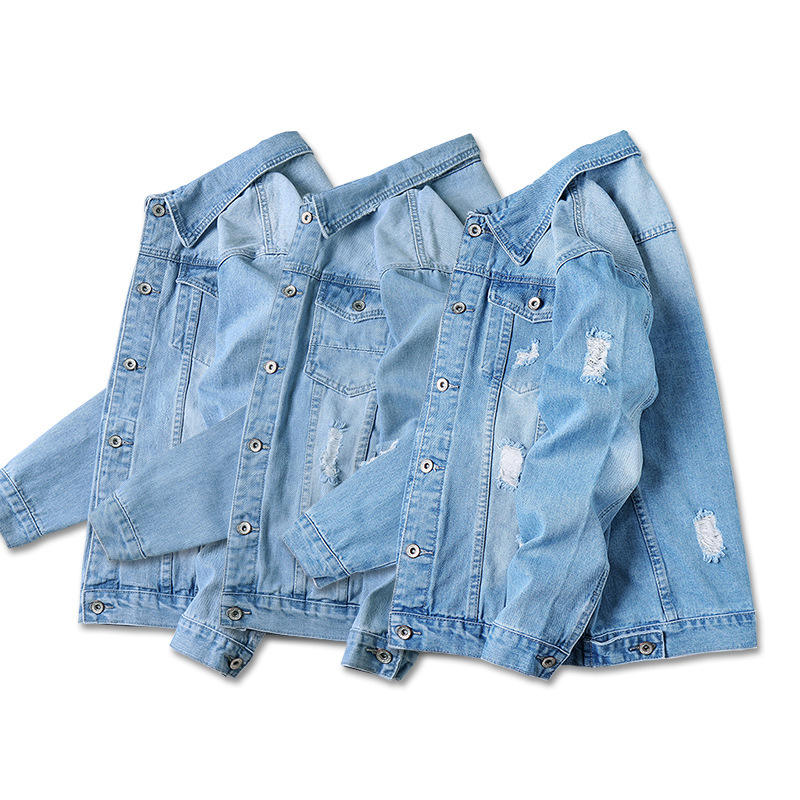 Customizable Vintage Streetwear Men's Cropped Jean Jacket Studded Ripped Denim Coat Other Fabric OEM Service Available