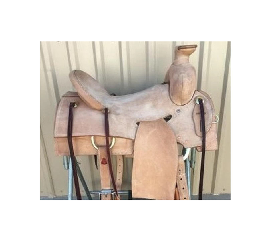 DD Roughout Tan Leather Western Roping Horse Saddle Latigo Accent Hard Seat Plastic Tree 10" to 18" Inch