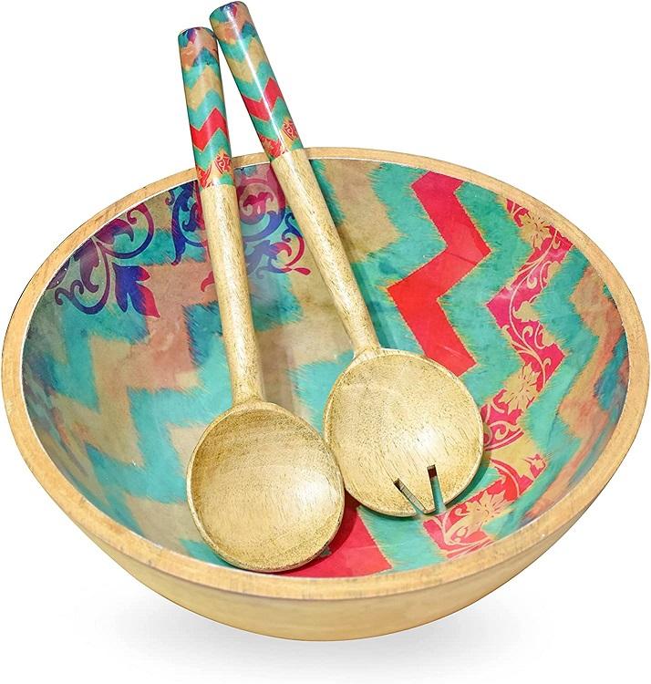 Customizable White Enamel Hand Crafted Mango Wood Dining Bowl with Server for Multipurpose Use and with Best Quality