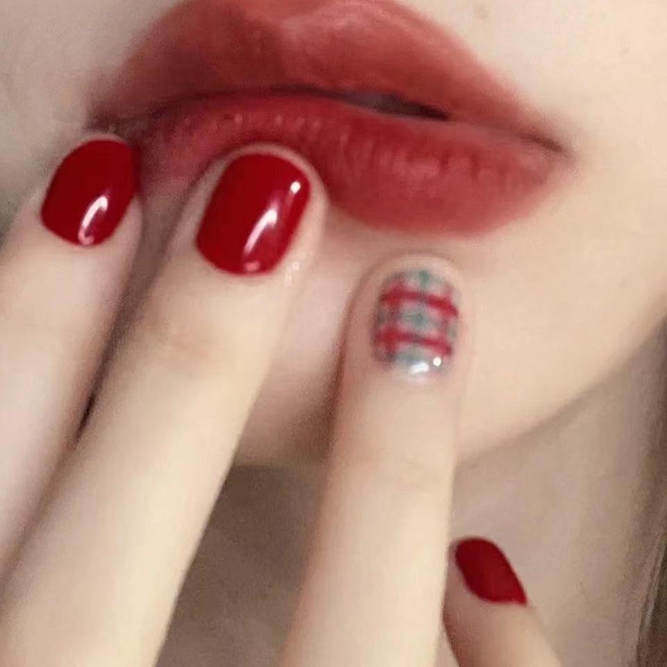 Customizable Wholesale 12 Pcs Art Acrylic Press on Nails Half Cover Almond Shape Glue Pre-designed Candy False Nails 977/1320