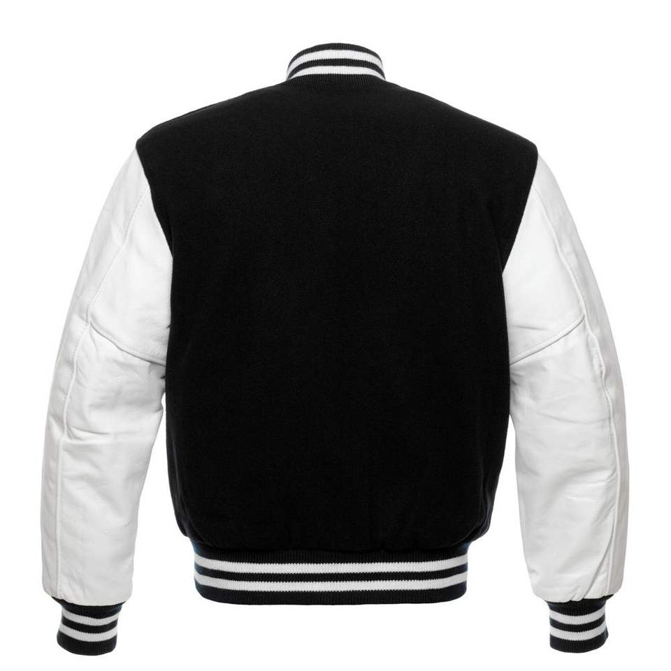 Customizable Winter Baseball Jacket Varsity Style Wool Fabric Stand Chenille Embroidery Patch Logo Black White Letter