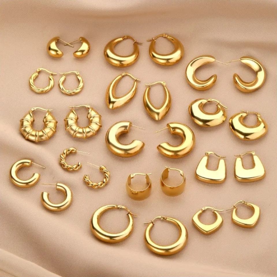 Customizable Women 18k Gold Plated Stainless Steel Huggie Earrings Hypoallergenic Jewelry Screw Twisted C-shape Hoop Earrings