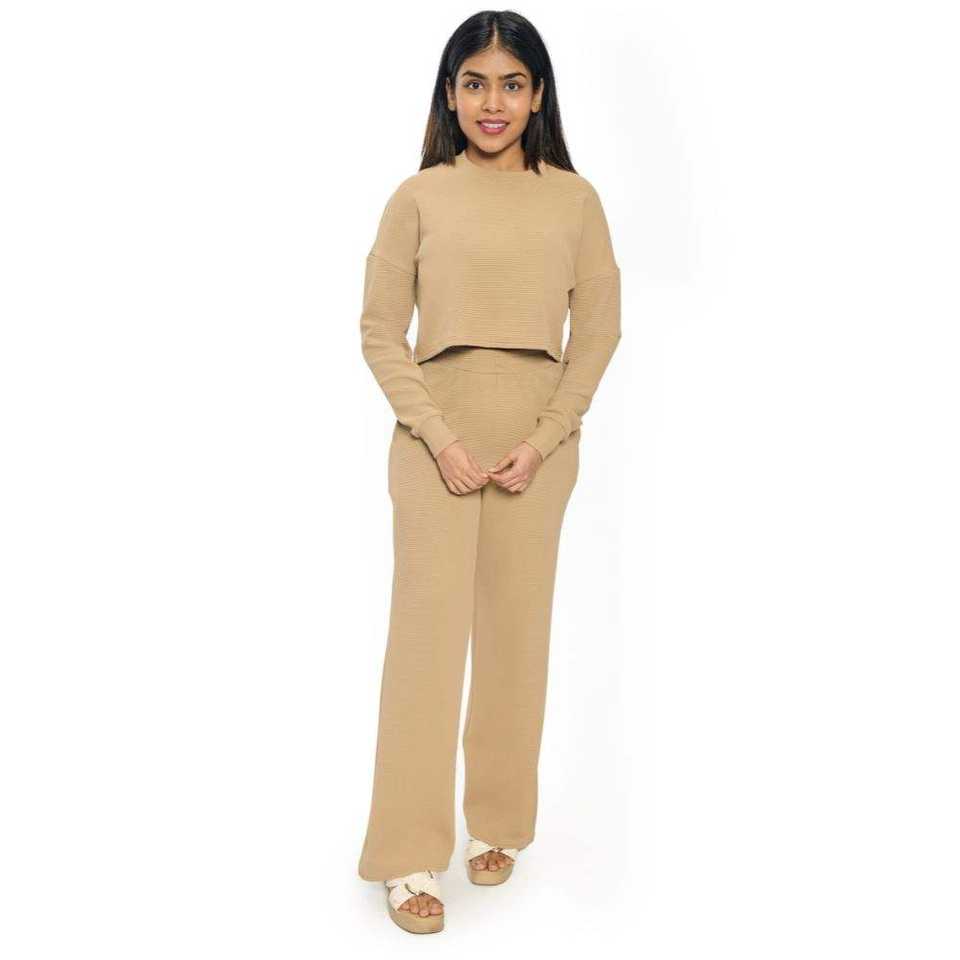 Customizable Women Polyester Blend Co Ord Two Piece Set Knitted Long Sleeve Top Trouser Casual Wear Wholesale
