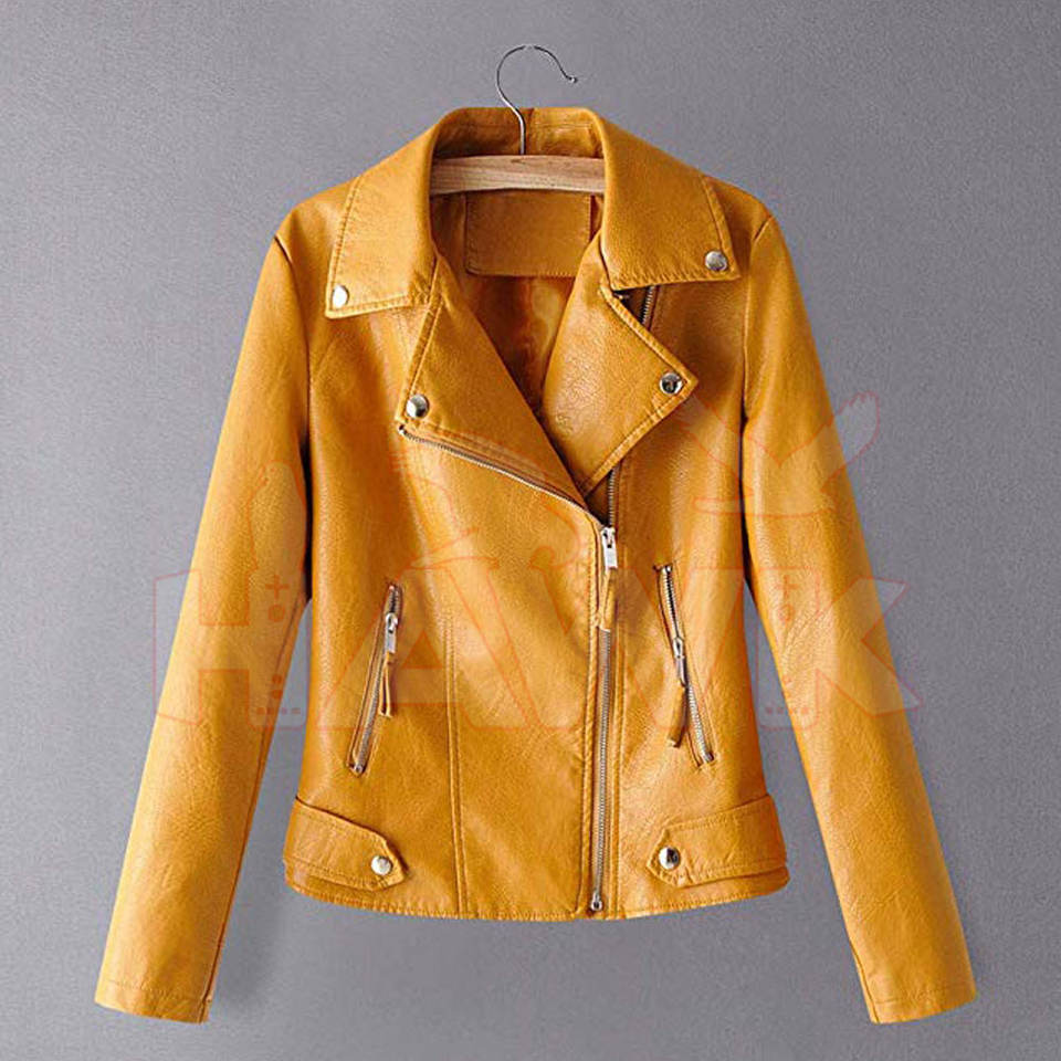 Customizable Women's Biker Jacket Best Quality Genuine Sheepskin Leather Soft Finish Vegetable Tanned Plus XL Printed Fabric