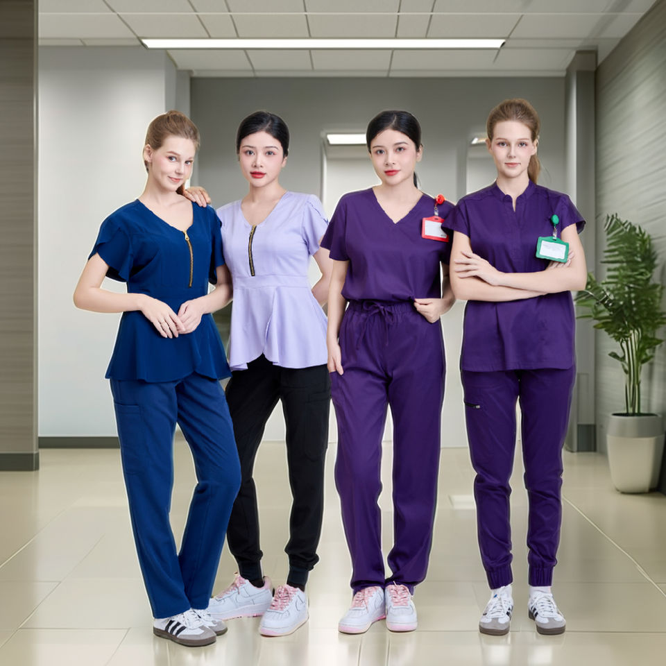 Customizable Women's Nursing Uniforms Hospital Medical Scrubs Chest Pocket Both Way Spandex Salon Uniforms Nurse Set Embroidery