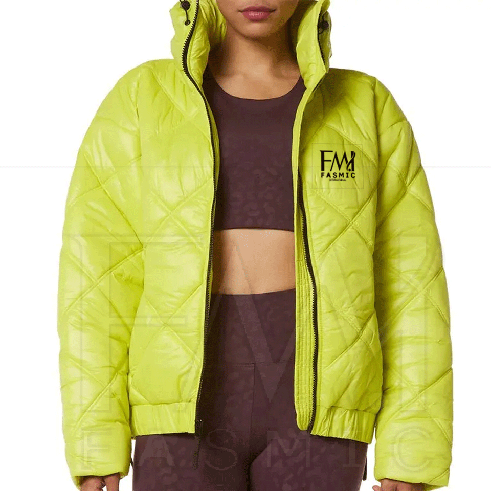 Customizable Women's Winter Puffer Jacket with Solid Pattern 100% Polyester Knitted Woolen Fabric Custom Peking Design