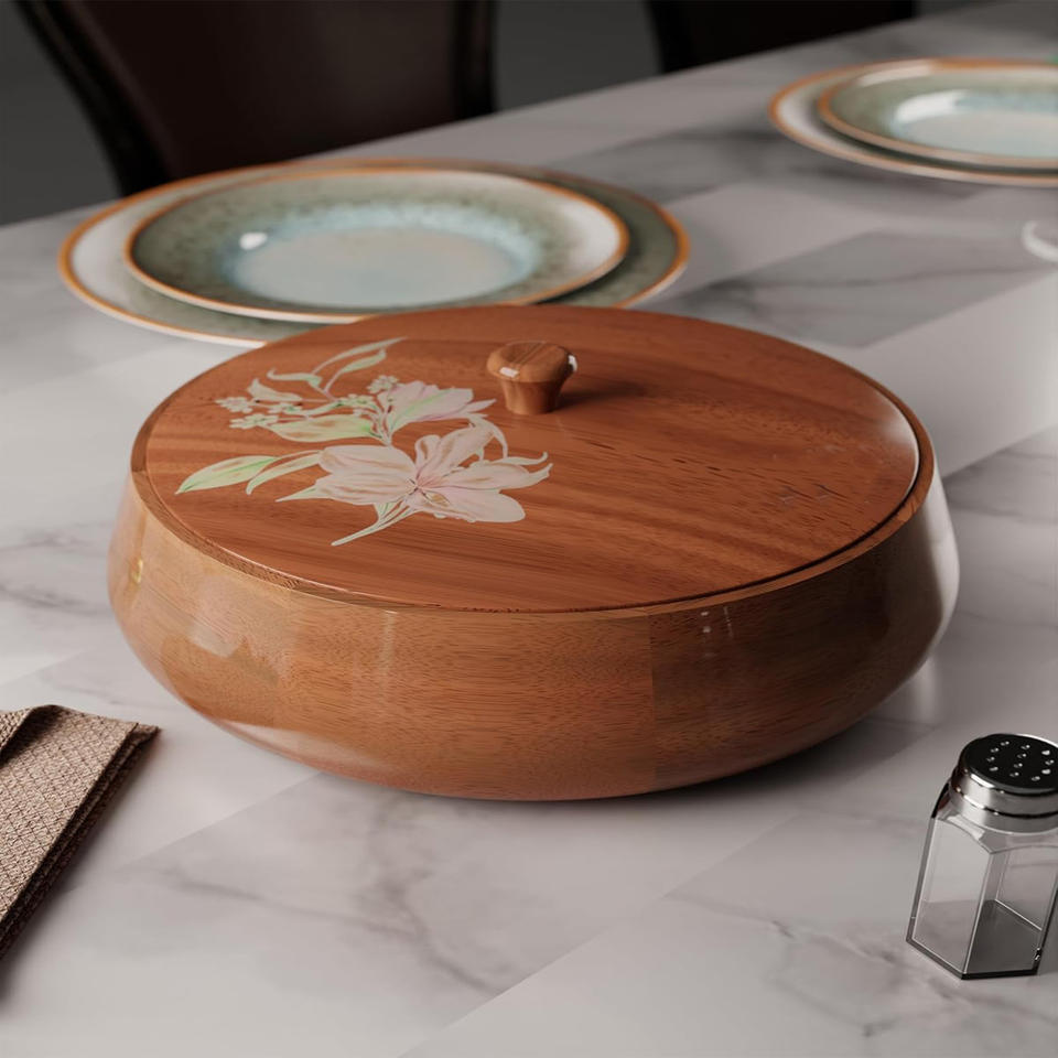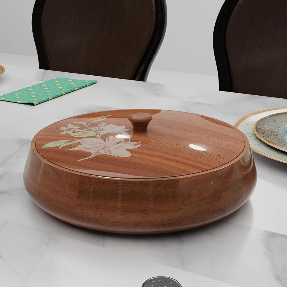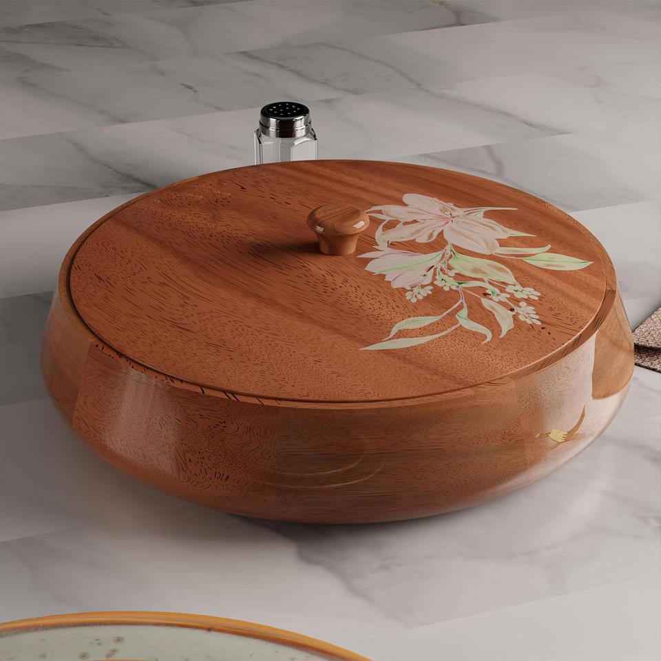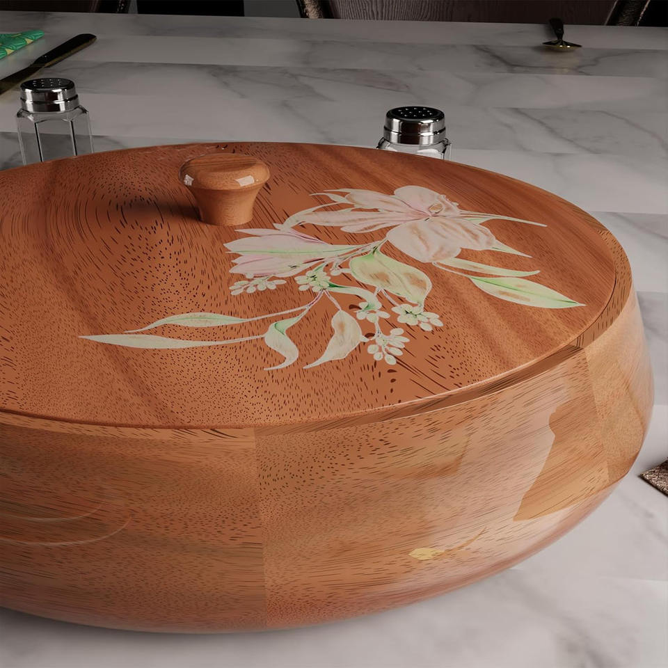Usage:Handcrafted Wooden Chapati Box With Floral Print
