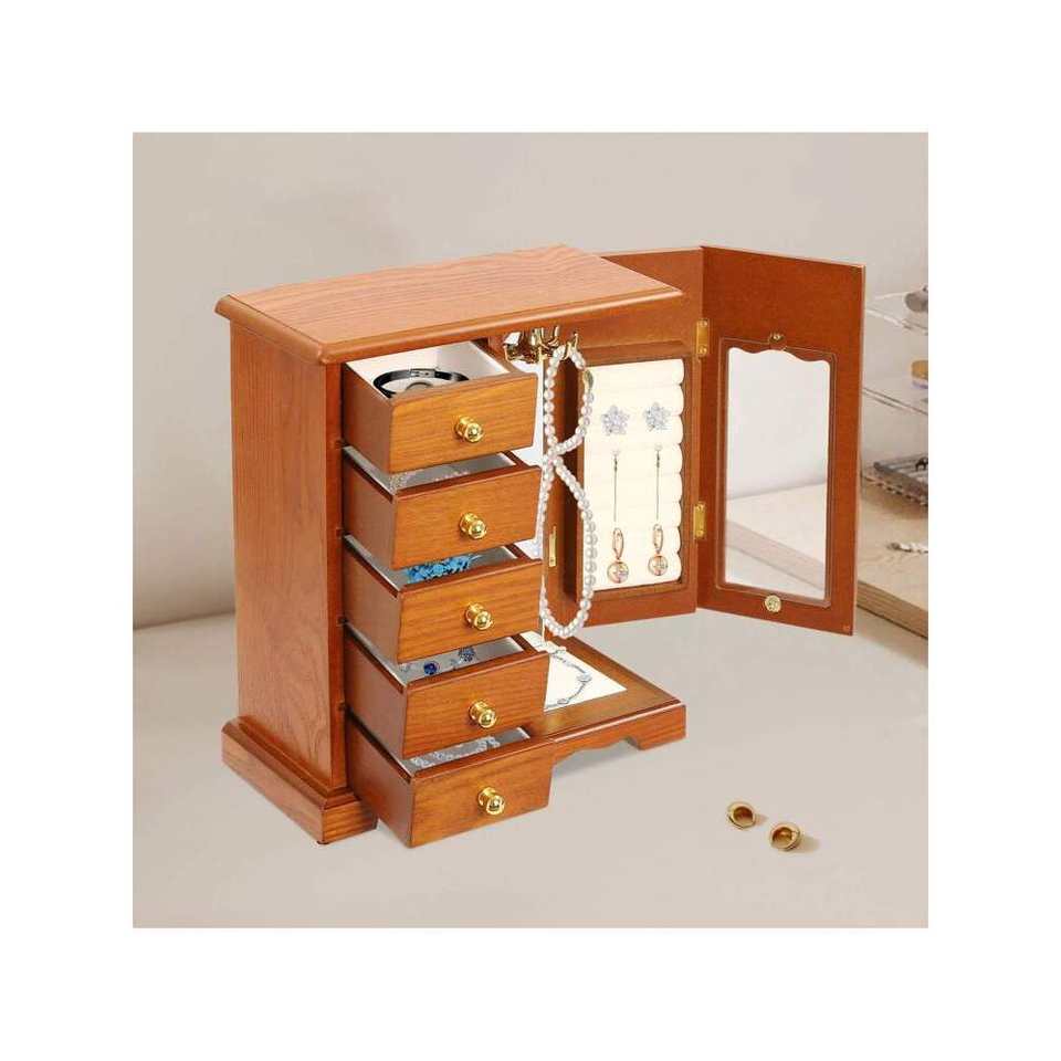 Customizable Wooden Jewelry Box 5-Drawer Desktop Organizer with Necklace Hooks for Ring Storage for Jewelry Storage