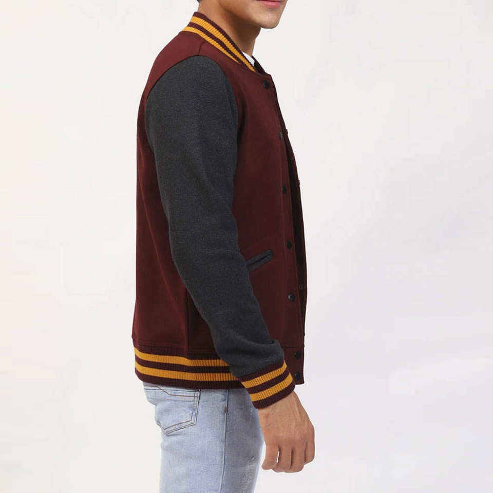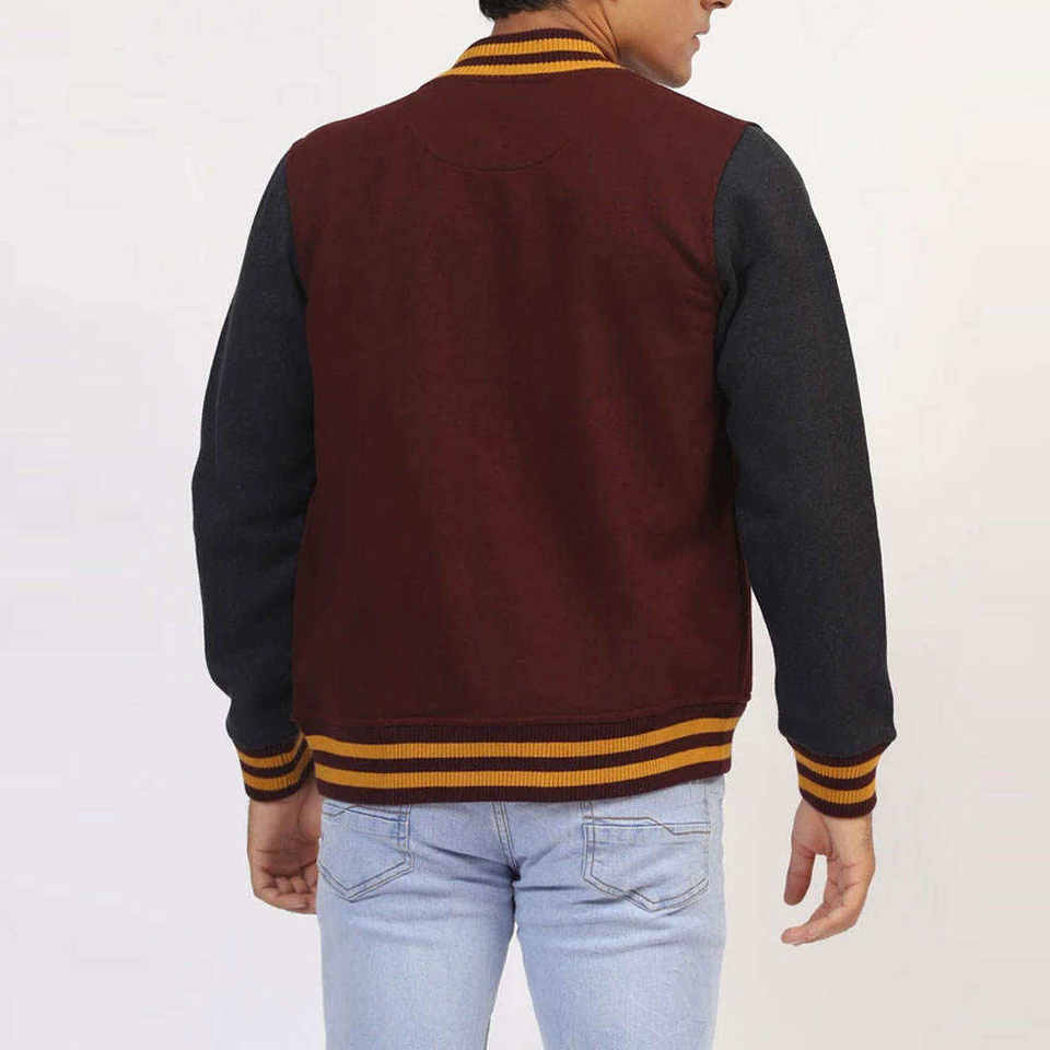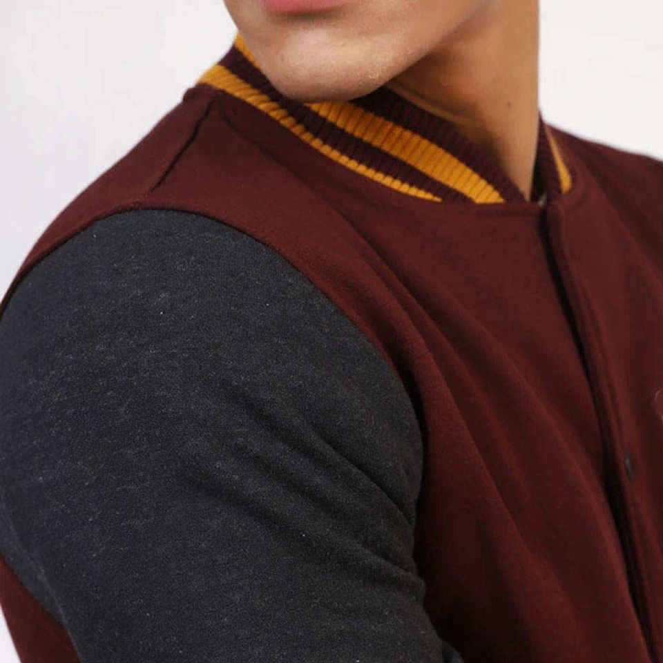 Customizable Wool/Leather Varsity Baseball Jacket Men Stand Collar Woven Fabric Winter Letterman Jackets Embroidered Front