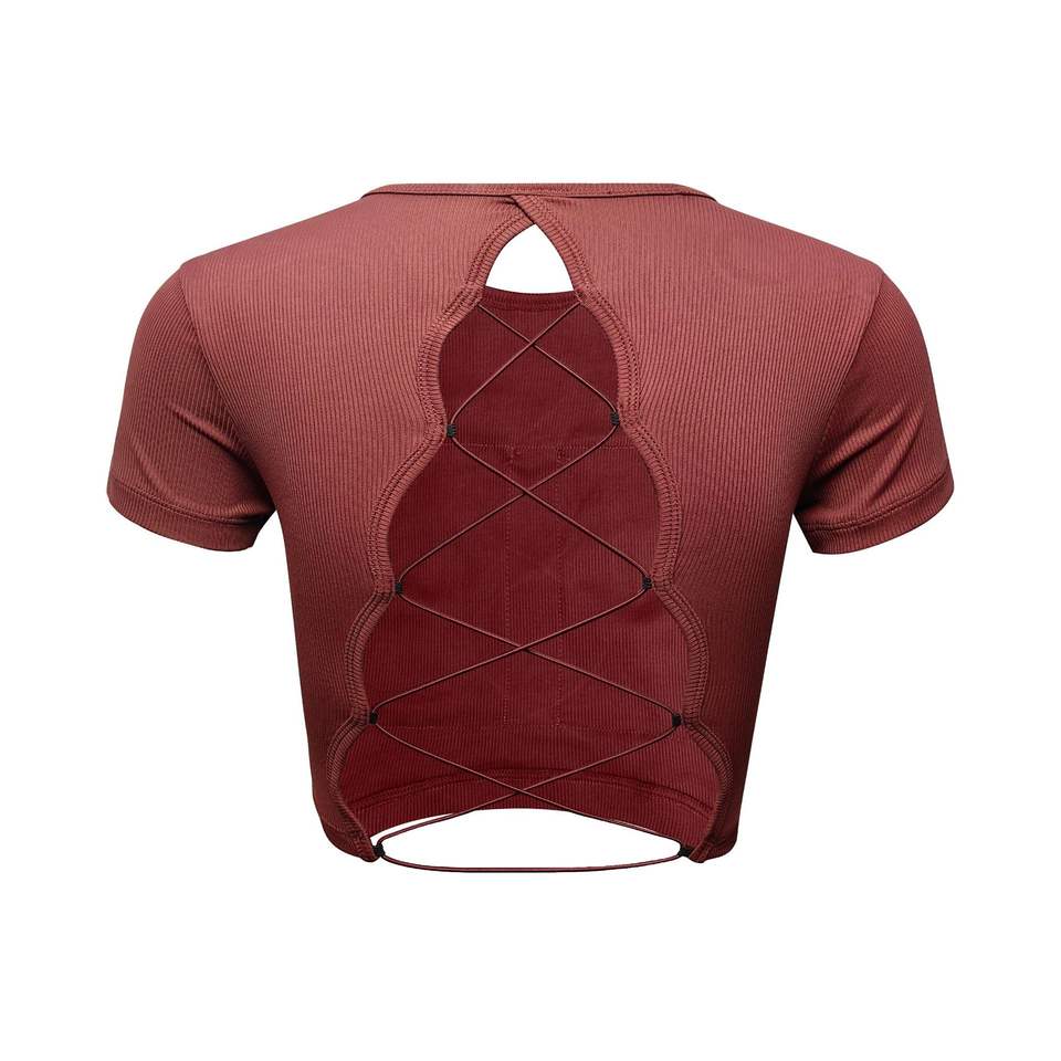 Customizable Yoga Crop Top with Sexy Back Straps Chest Cushion Short Sleeved Sports Top for Plus Sizes Beautiful Hollow Design