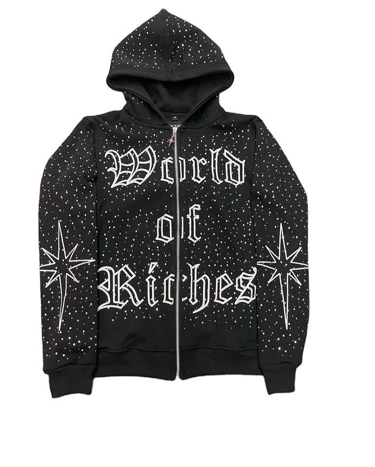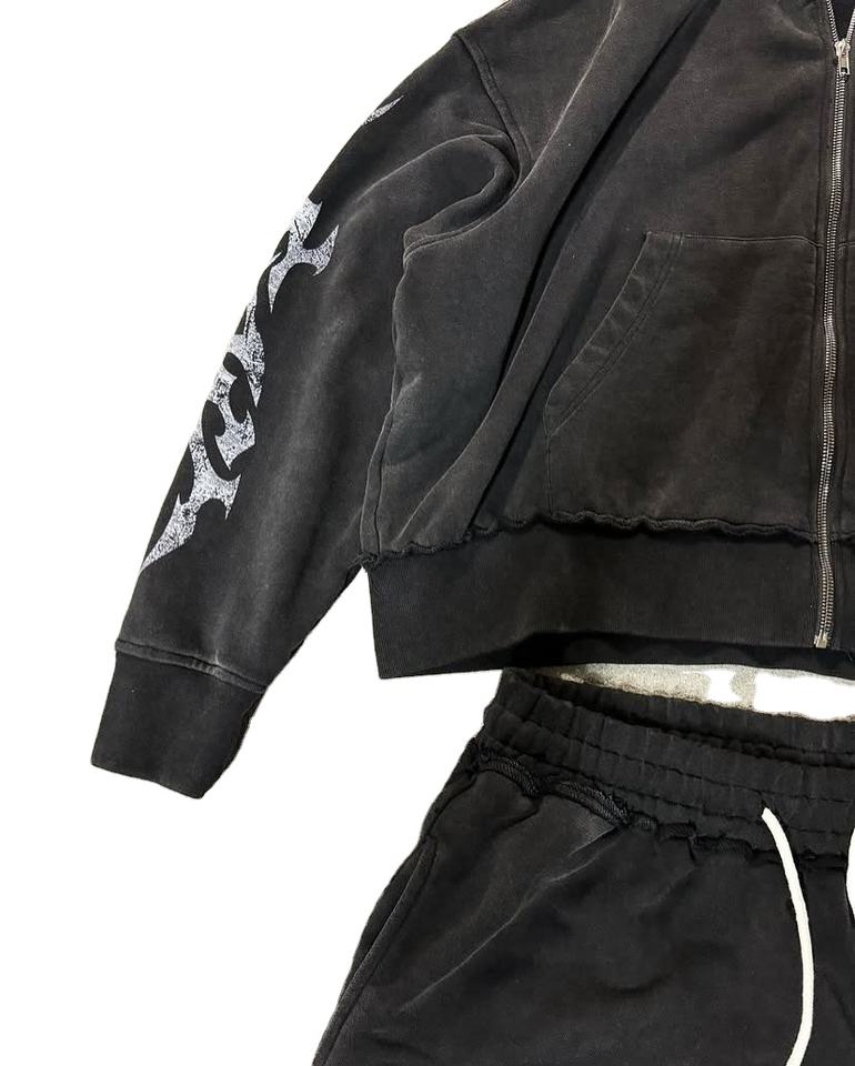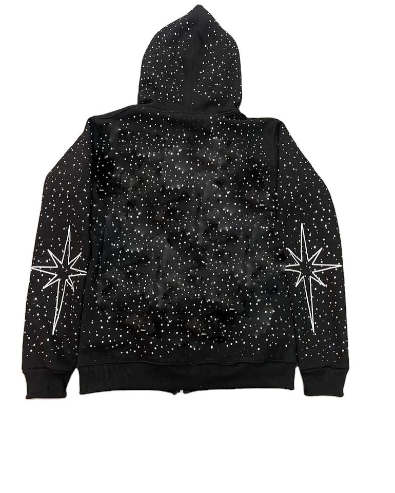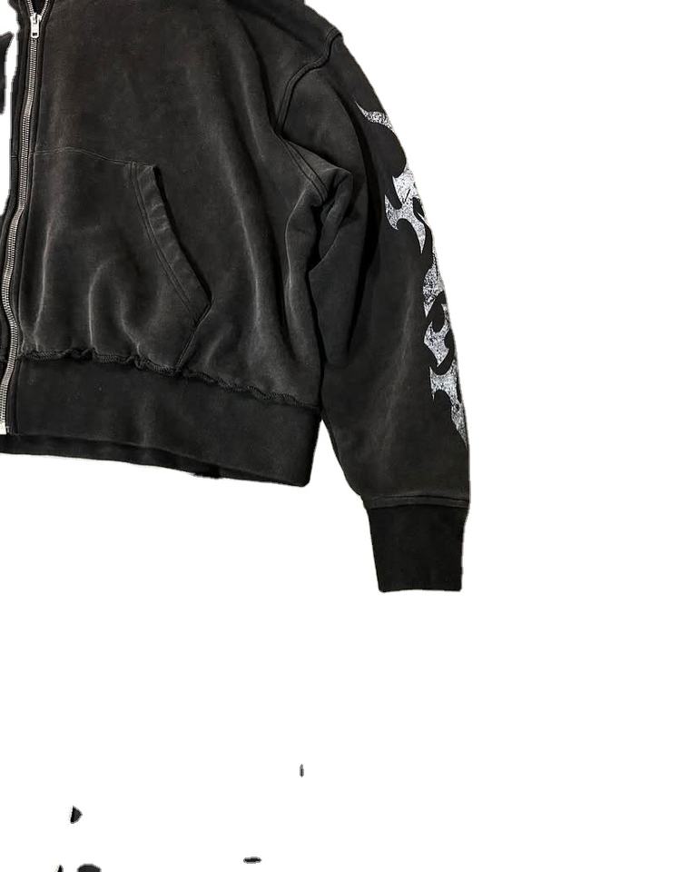 Customizable Zip-up Men's Tracksuit 100% Cotton Rhinestone Acid Washed Effect Hooded Collar Breathable Quick Dry Solid Pattern