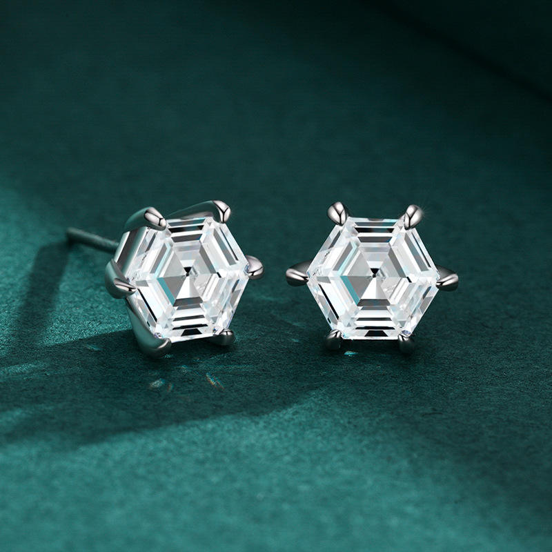 Customizable copper version Classic S925 sterling silver hexagonal-cut zircon hexagonal stud earrings for everyday wear by women