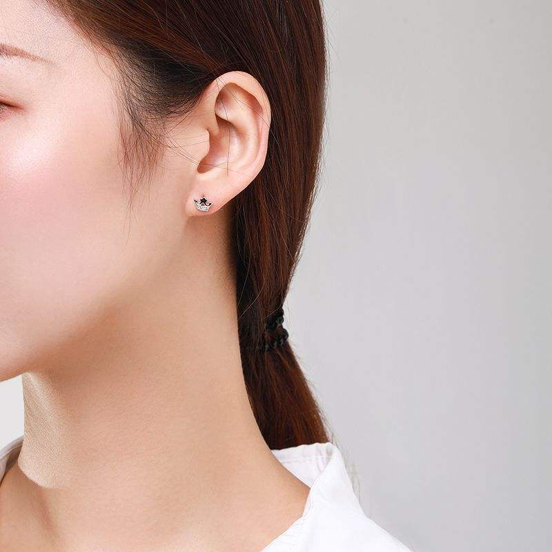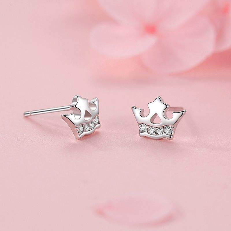 Customizable copper version Minimalist S925 Sterling Silver Round Cut Zirconia Crown Earrings for Women Valentine's Day Gift