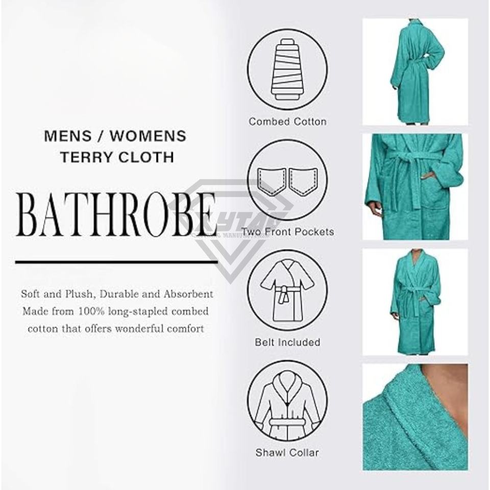 Customizable for Hotels Resorts Spa Home Use Bathrobes Unisex Terry Bathrobe 100% Cotton Soft and Breathable Wholesale