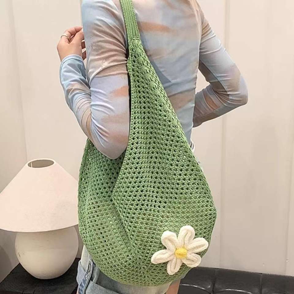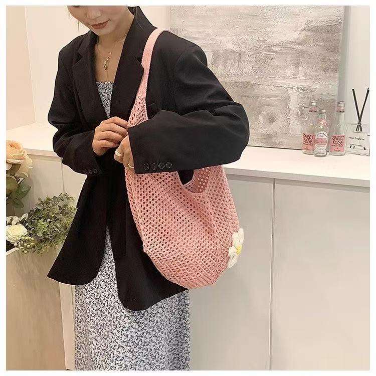 Customizable handmade knitted shoulder bag casual fashion tote for women
