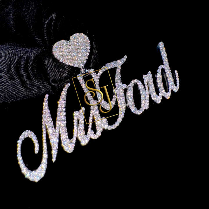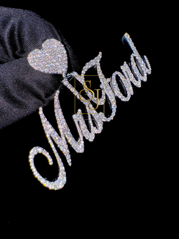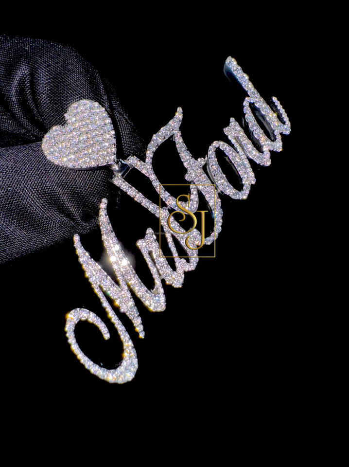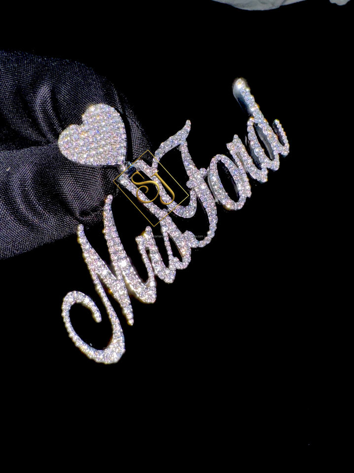 Design:Iced Out Moissanite Name Letter Necklace With Heart Bail Pendant