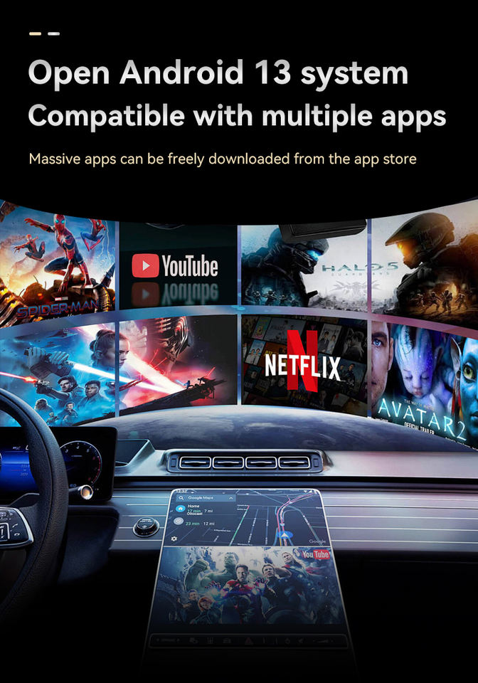Full android system,wireless carplay,android auto,airplay,mirror link.