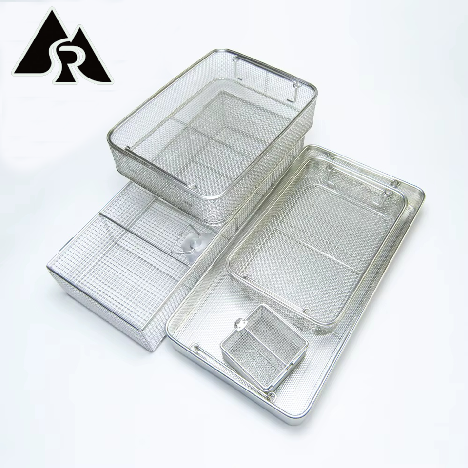 Customization 304 Stainless Steel Woven Wire Mesh Storage Baskets Sterilization Filter Housing Metal Instrument Washing Baskets