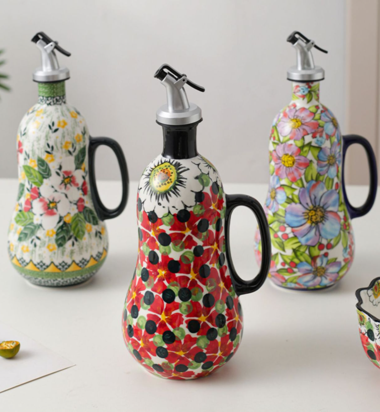 Customization Bohemian Series Ceramic Oil Soy Sauce Pot for Kitchen Seasoning Restaurant Hotel Storage Bottle Wholesale Option