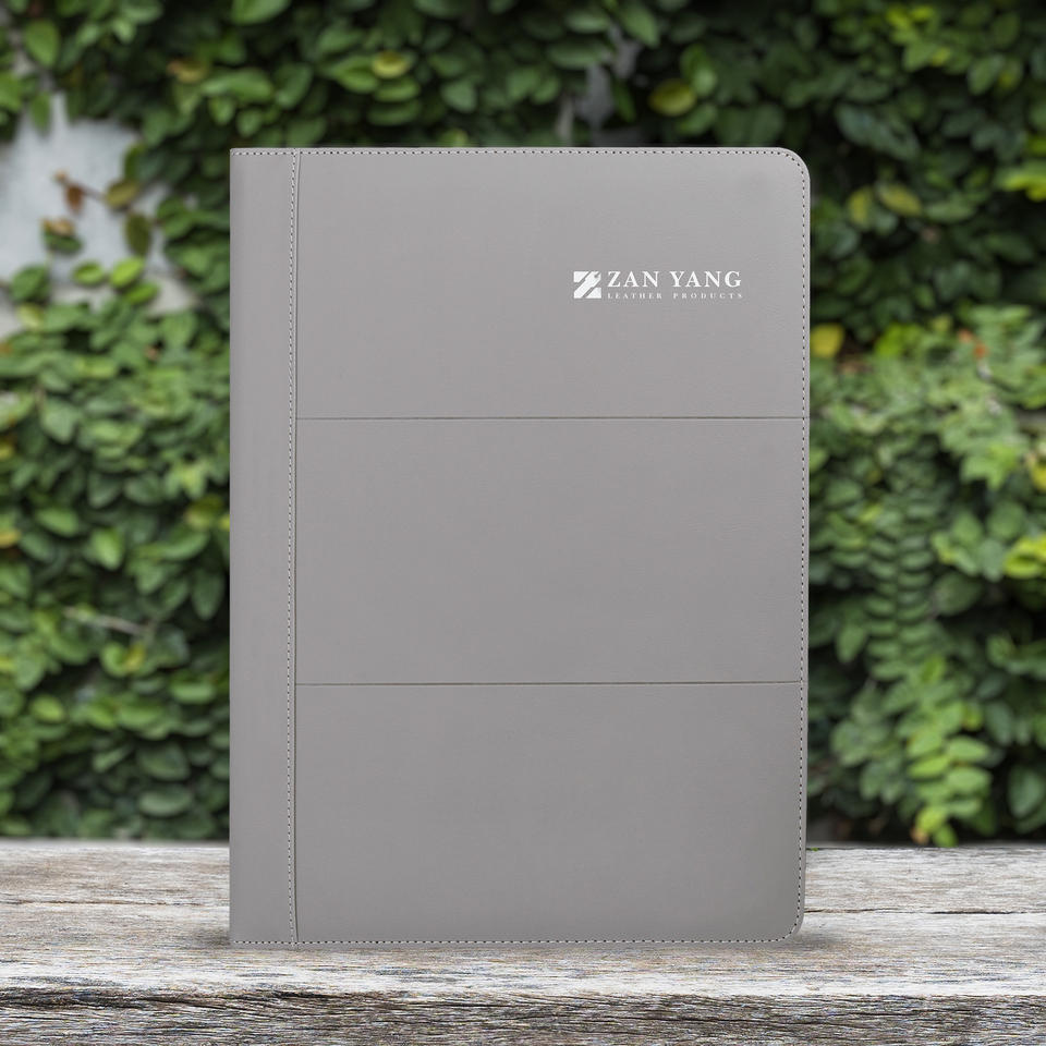 Customization Business Simple Lines Zippered Handbag Portable Leather Document Folders