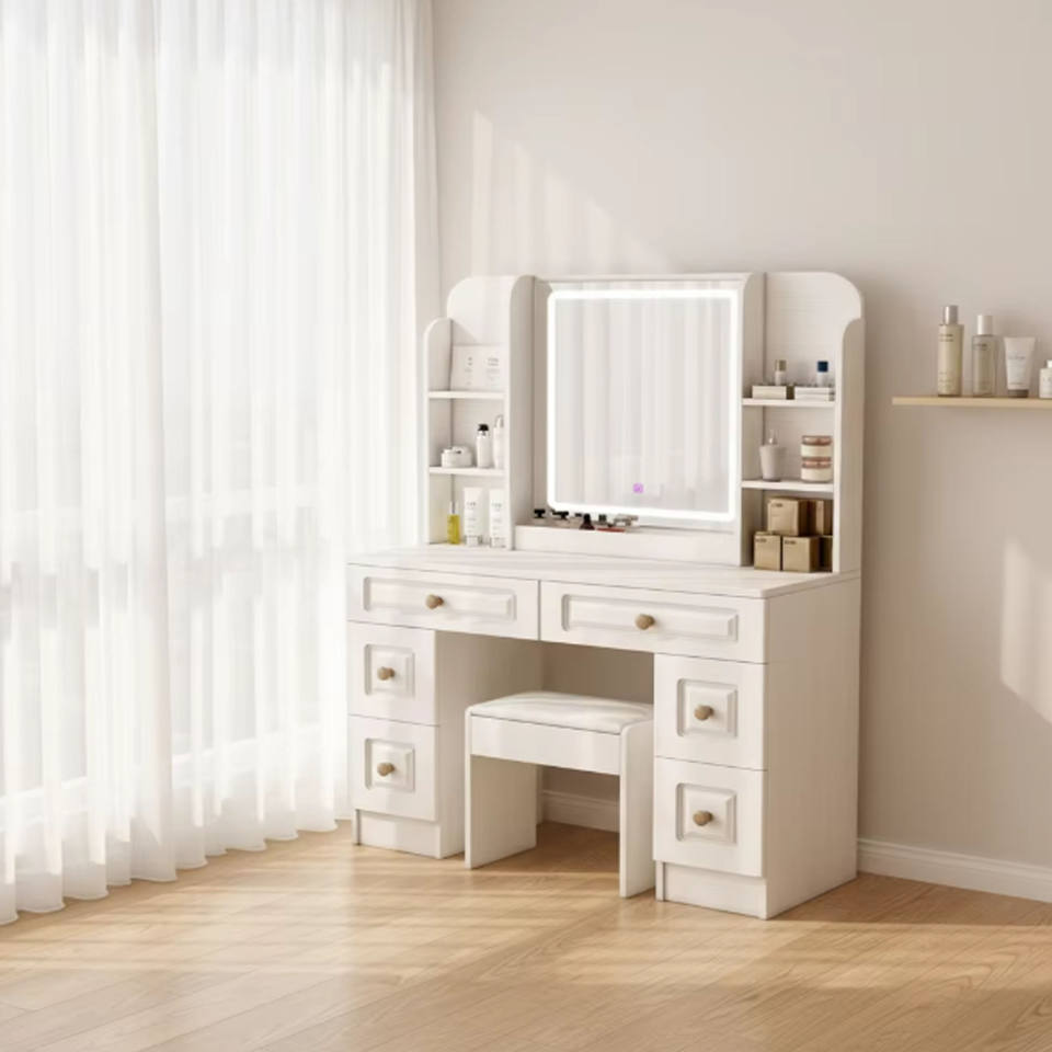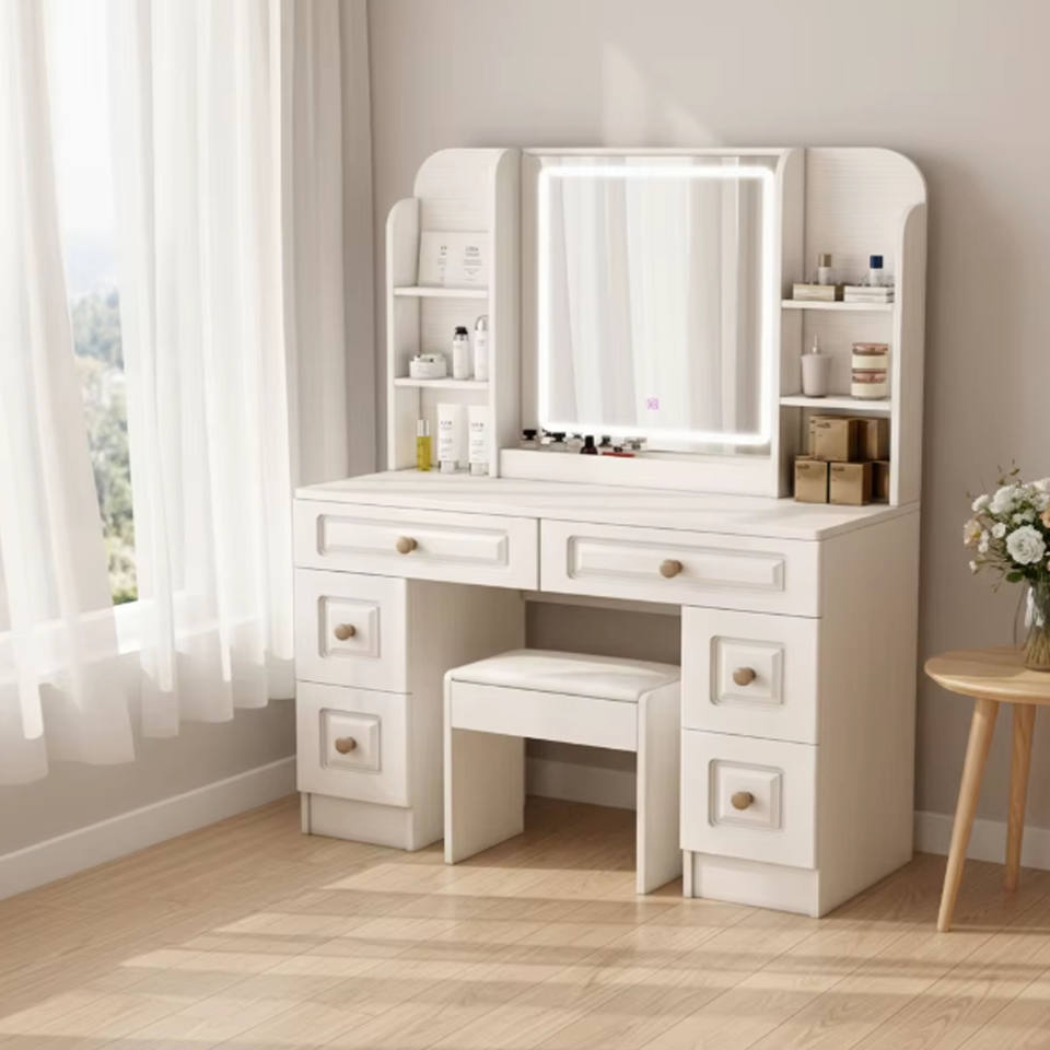 Customization Eco-friendly Solid Oak Wood Vanit Dressing Table Wardrobe Set with Modular Design and Lighted Mirror