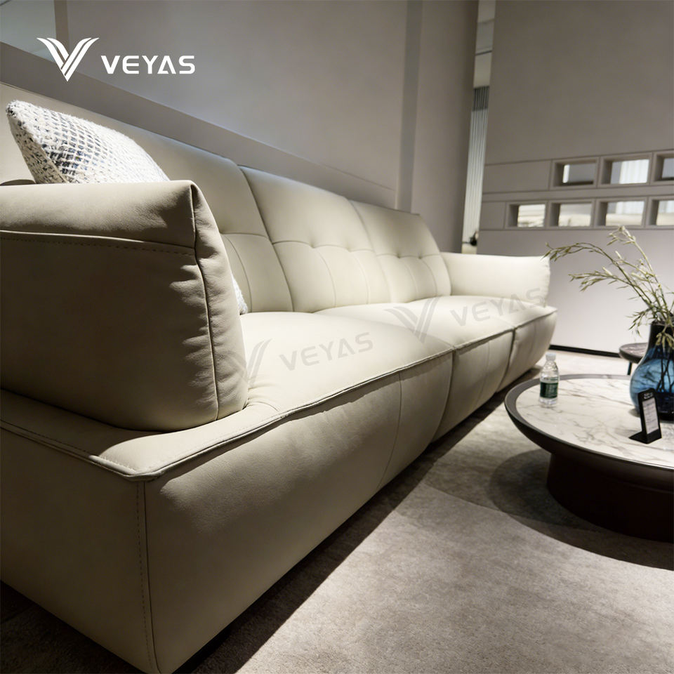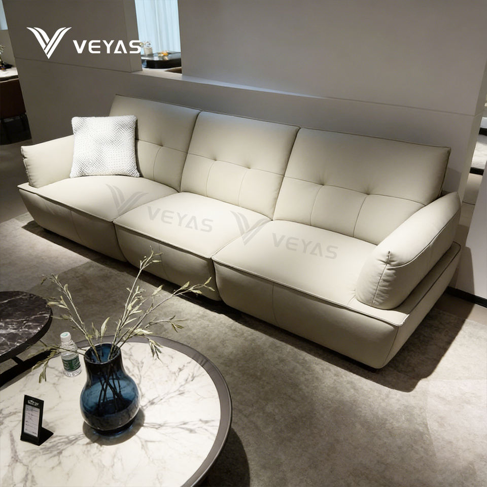 Customization Ganzhou Modern Sectional Three Seat Genuine Leather Luxurious Reasonably Priced Sitting Room Furniture Stainless