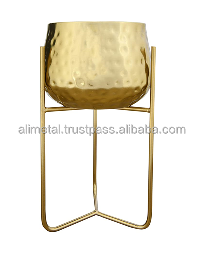 Customization Gold Powder Coated Metal Planter Set with Stand for Farmhouse Garden & Home Eco-Friendly Flower Pot