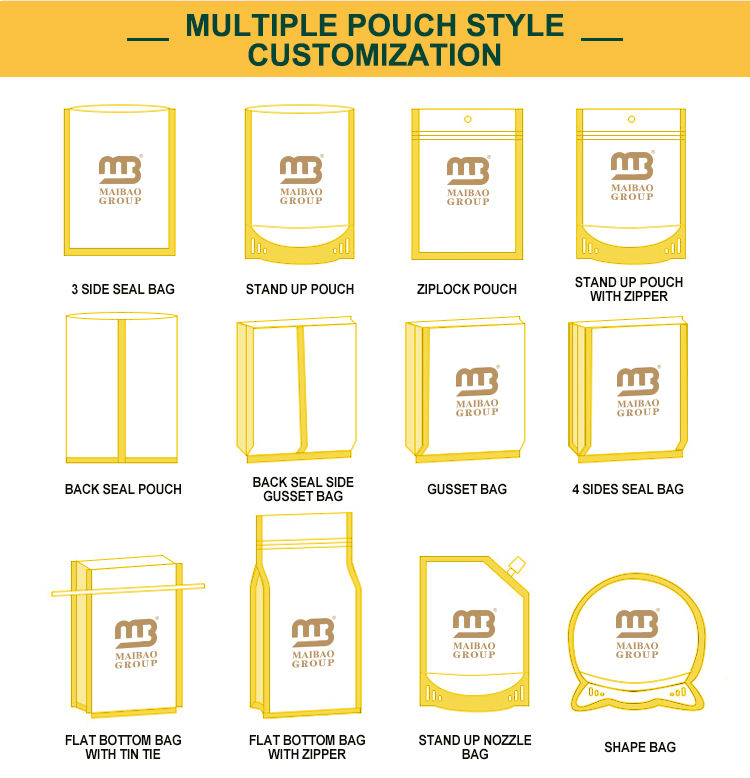 BOPP/VMPET/LLDPE(Aluminum Foil), PET/LLDPE, Kraft