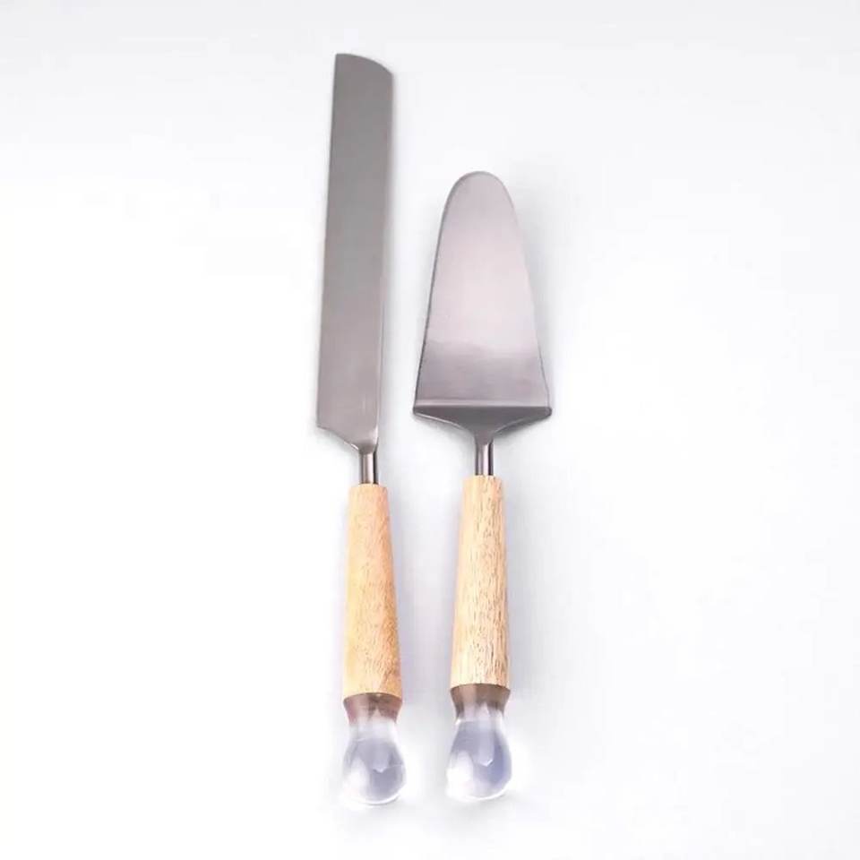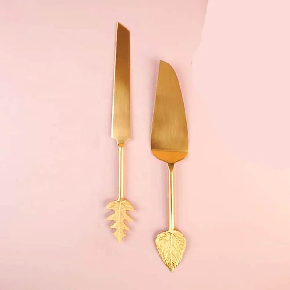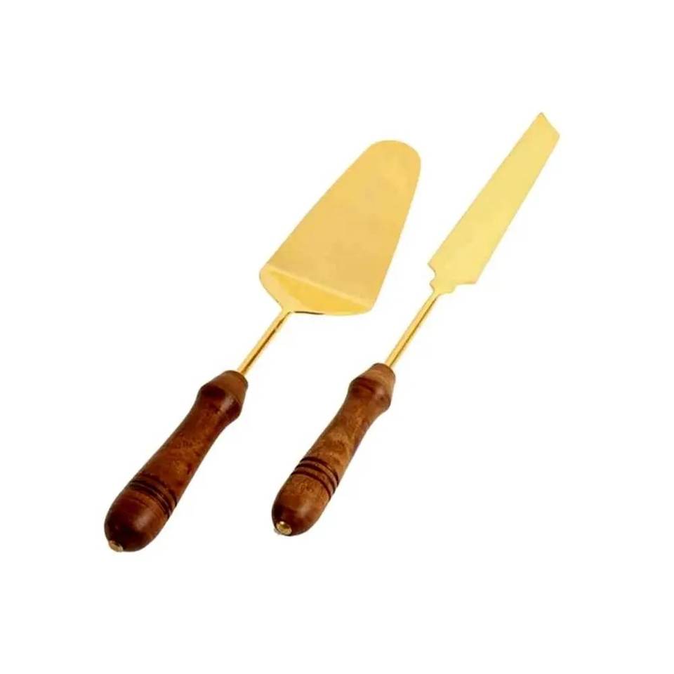 Customization Stainless Steel Cake Serving Set With Brass Handle Wedding Decorative Cake Knife & Cake Server Set Hot Selling